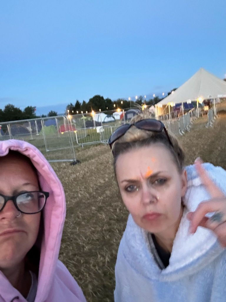 We tripped over tents and got lost, Trish wore a body suit and then dungarees…so toilets were extra fun.